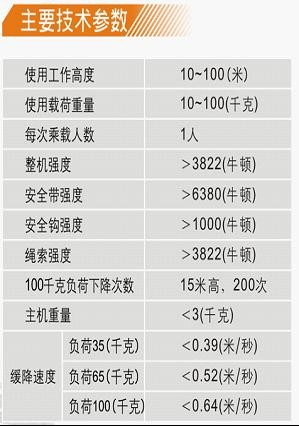 (5)著地站穩(wěn)后,滑降繩索另一端的******帶已升至原來(lái)始緩降處,第二個(gè)人即可套上******帶按同樣方法滑降逃生,依此往復(fù),連續(xù)使用。